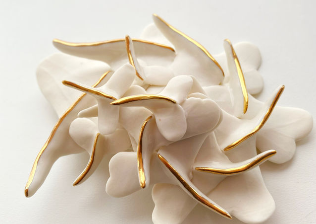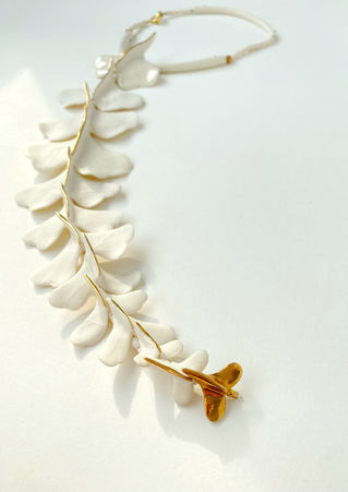 I have always made jewelry, in my childhood I used to play with copper wire and small beads that I had stolen from my mom’s jewelry box. Later, after I graduated from the Ion Mincu architecture university, with the materials I had left from the layout, I started making with a dear friend plexiglass jewelry. That period of time was very important for my journey. I could apply the esthetics learned in college so that I could enter the wonderful world of contemporary jewelry. Three years ago I discovered porcelain, and it was an epifanie, the moment I touched the wet clay, I knew this was my journey. I like to seek inspiration in the animal and vegetable world, in the art of classic artists like Brancusi, Matisse…but sometimes events around us are an inspiration, the incredible courage that some people naturally have.